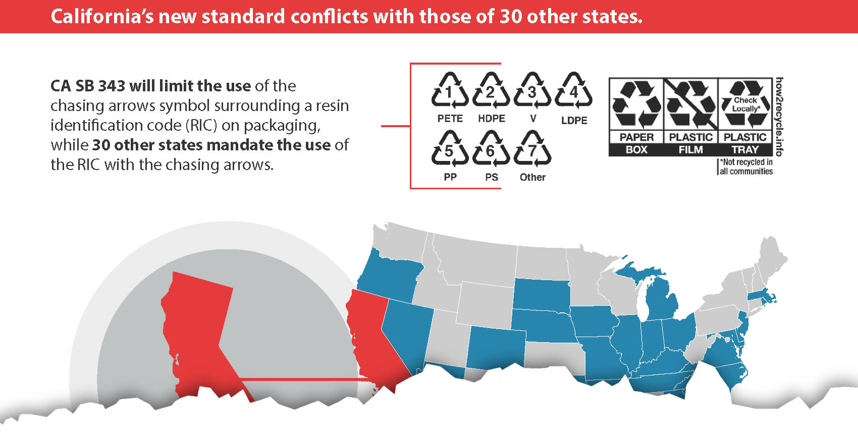 SB 343 differs from nationally recognized labeling standards, based on the Federal Trade Commission's Green Guides, which are designed to help companies clearly market to consumers. This inconsistency could lead to consumer confusion and hinder efforts to improve packaging recovery and recycling management. Additionally, the conflict between California and 30 other state laws have placed producers in a difficult position, forcing them to develop California-specific labeling or potentially cease selling some types of packaging in the state.